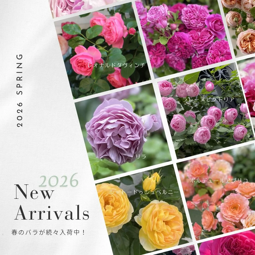 バラ苗はもちろん、鉢植えのバラを美しく魅せる装飾を施したテラコッタの鉢や、つるバラなどに使用するフェンスやオベリスク、アーチその他、英国製ガーデンオーナメントなどもお取り扱いさせていただいております。ネット販売はしておりませんので、ぜひ店頭にお越しくださいませ。